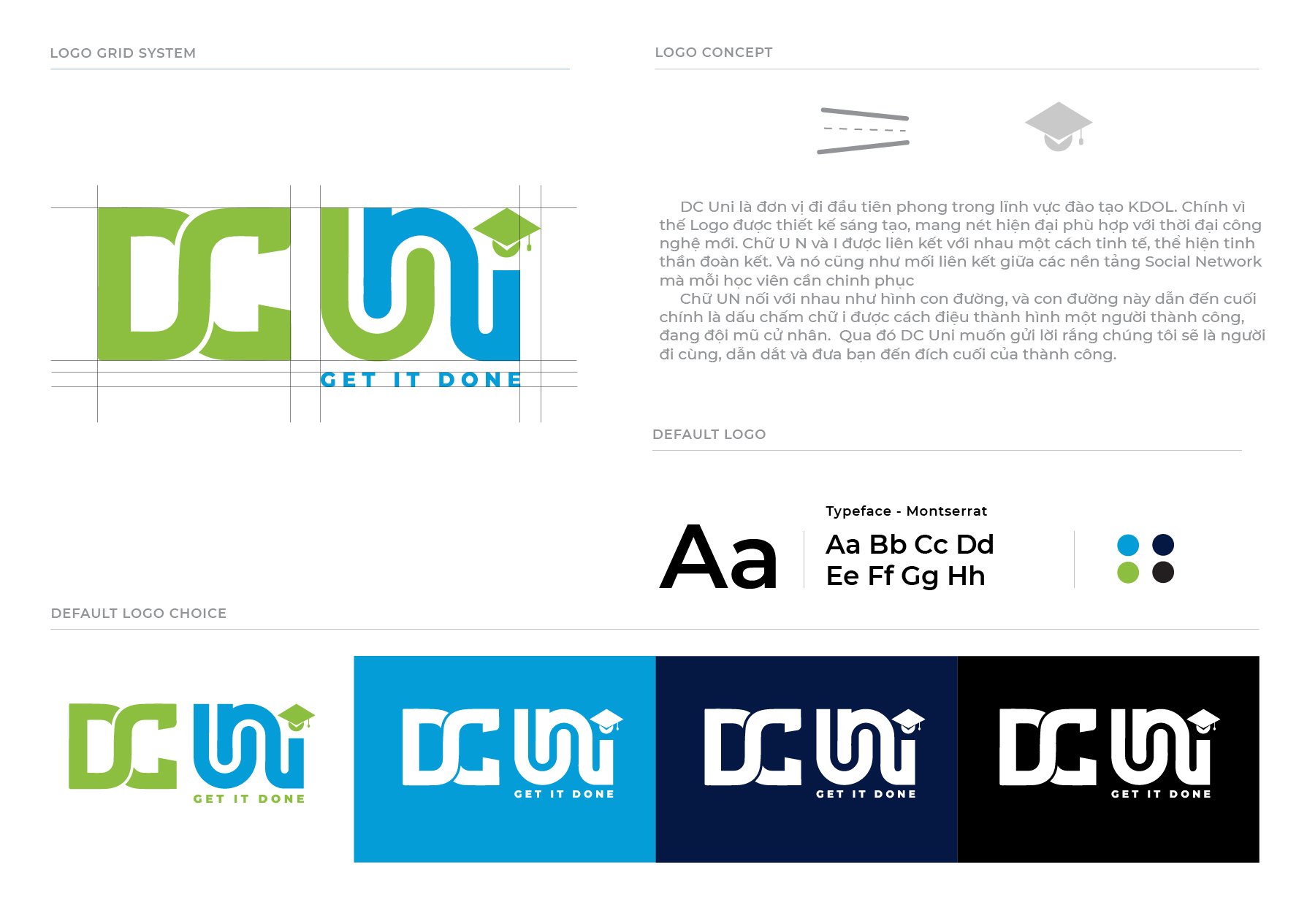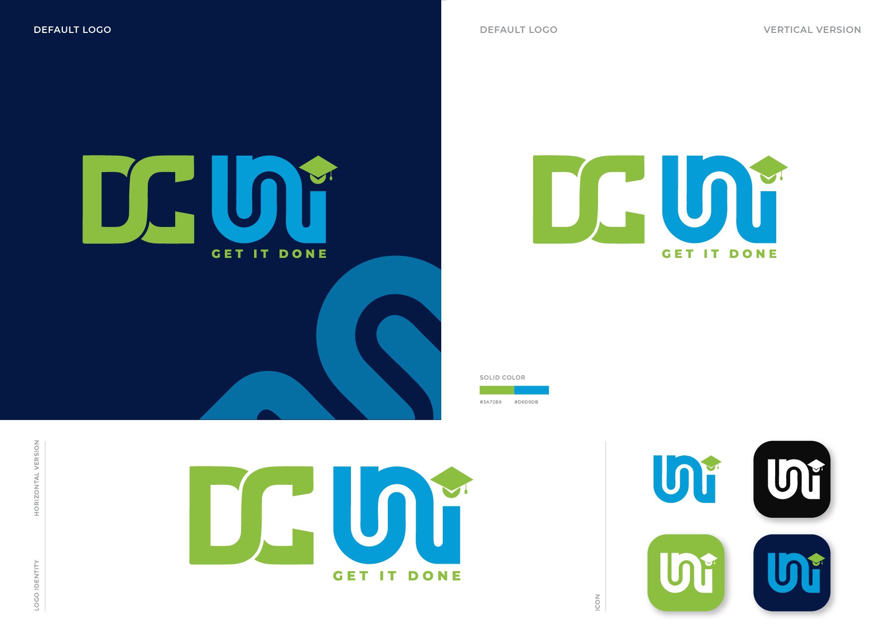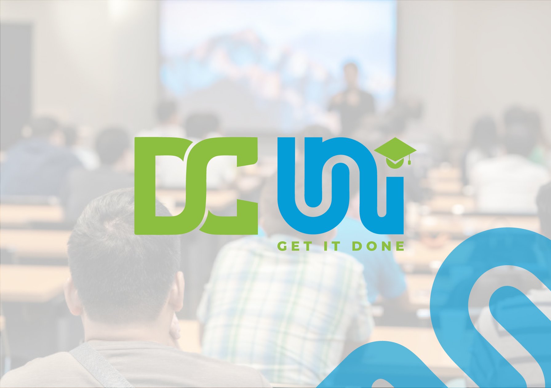 The logo for DC Uni is designed with a creative and modern concept, combining the elements of a graduation cap and a pathway, symbolizing the academy as the guiding road to success for its students.